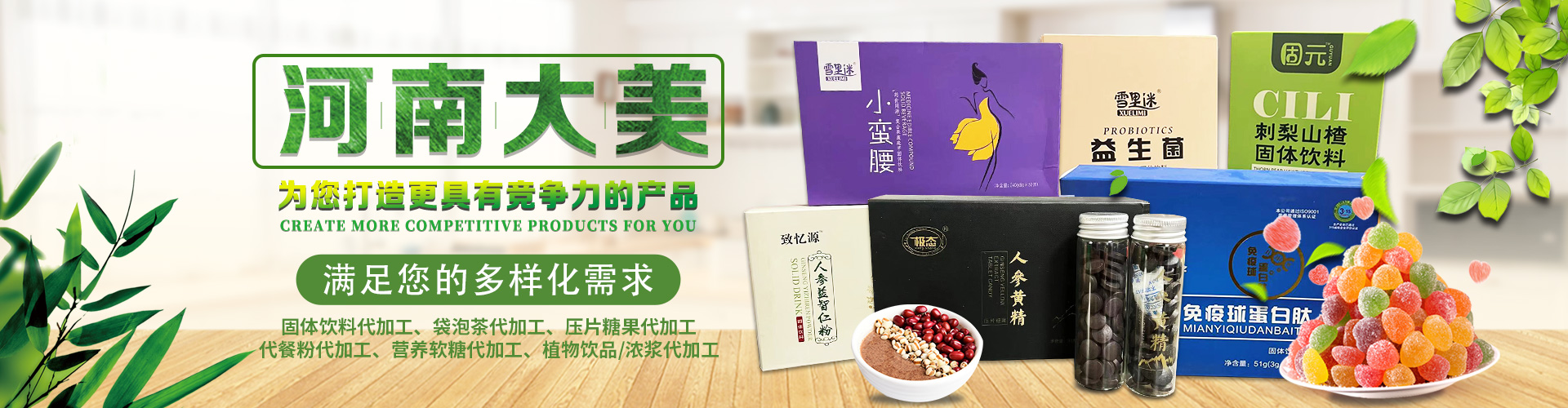 河南大美生物科技股份有限公司是從事顆粒劑、(固體飲料類),壓片糖果代加工等研發(fā)和銷售為一體的生產(chǎn)企業(yè)。公司依托自身的高科技研發(fā)隊伍和營銷團(tuán)隊,為國內(nèi)外客戶提供營養(yǎng)食品各劑型和規(guī)格的研制、生產(chǎn)、配方設(shè)計、批文申報等服務(wù),并為客戶提供多種形式的流通渠道及產(chǎn)品銷售服務(wù)工作。 您的要求就是我們的使命!我們的宗旨是與客戶“合作共贏,攜手向前”,共同創(chuàng)造事業(yè)新的輝煌!